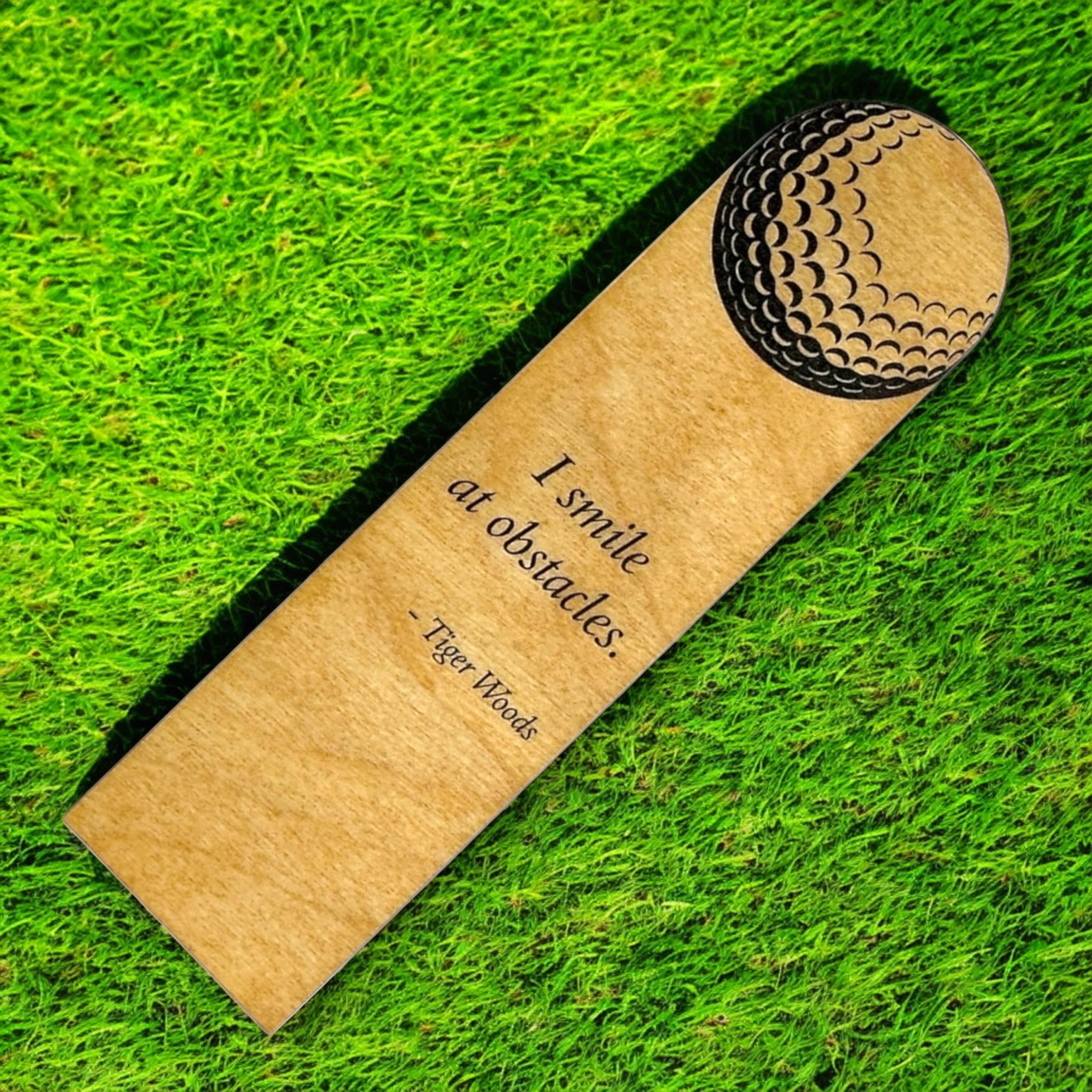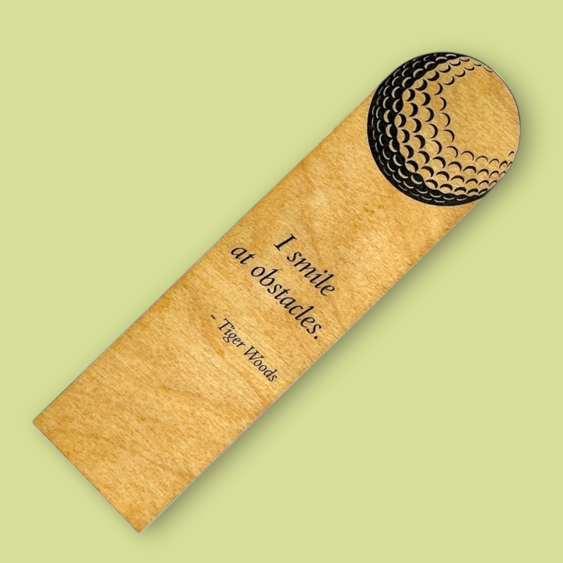 “I smile at obstacles,” whether you’re playing for your next tour win or just trying to stay under par, it serves as a daily reminder to take opposition in stride. This wooden bookmark, cut to the shape of a golf ball, is perfect for golf enthusiasts and book lovers alike. Made from durable 1/16 Multiply Baltic Birch wood, its thin design ensures it nestles snugly between your book’s pages without adding extra bulk or damaging the binding.