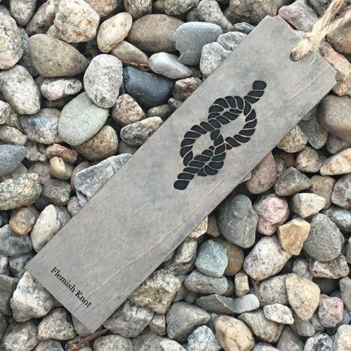 Part of our Nautical Knots series our detailed Flemish Knot bookmarks will stop you from loosing your halyard up the mast, or loosing the page in your current read. Cut from super thin Baltic Birch that won?t damage your book binding. Use the custom Name Drop feature to customize the bookmark with a name or saying at no additional charge. Made in the USA.