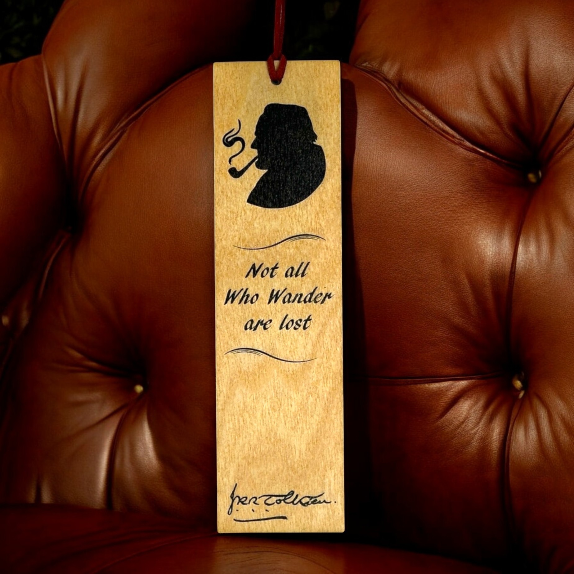 “Not All Who Wander Are Lost”. One of JRR Tolkien’s most powerful quotes and the motto of travelers everywhere. ?Remember a literary great and embrace the spirit of the wanderer with our Tolkien Wooden Bookmark. Handcrafted in the USA, inGENEius wooden bookmarks combine the durability and natural texture of 1/16″ Baltic Birch with the Vibrancy of full color printing. Their thin profile ensures they won’t add bulk or damage your book binding. Perfect for book lovers, the bookmark’s elegant design and timeless quote make it a perfect companion for your next reading adventure.
