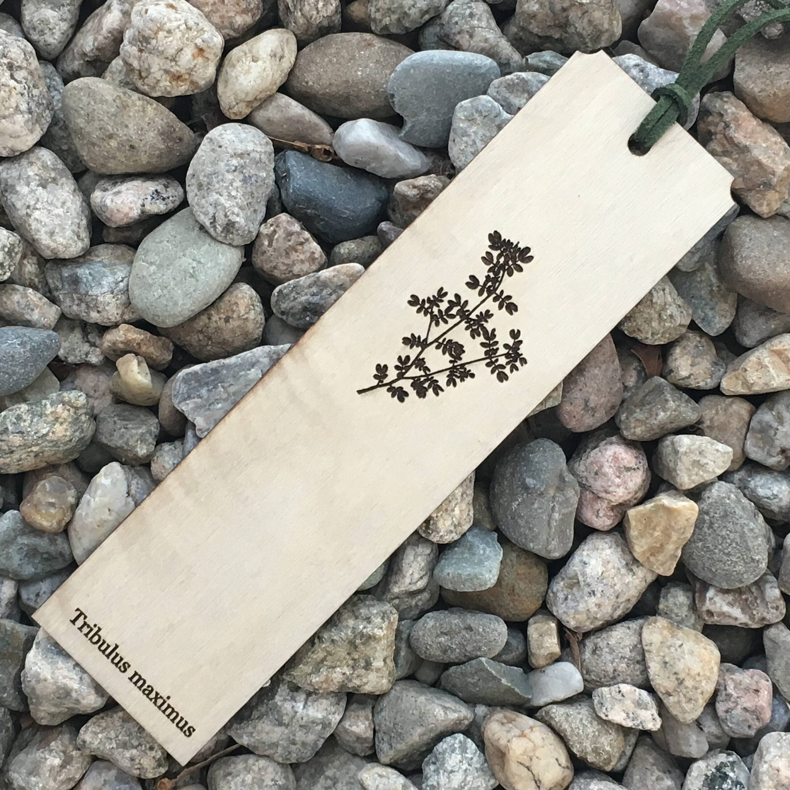 One of our collection of flora pressings. The Tribulus Maximus reminds us of a pre-camera era when Victorians captured and preserved natural life in a pressing. Now a print of that same beauty will mark your pages as a bookmark. Made in the USA.
