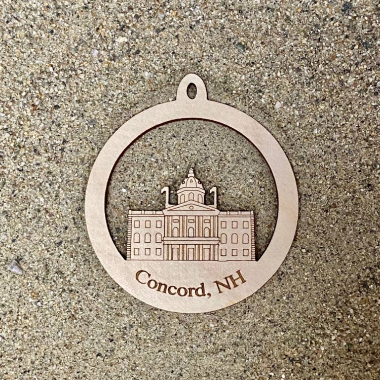 Say Merry Christmas in an extra special way with our Concord, NH ornament. Use the custom Name Drop feature to add your name for no additional charge. Made in the USA.