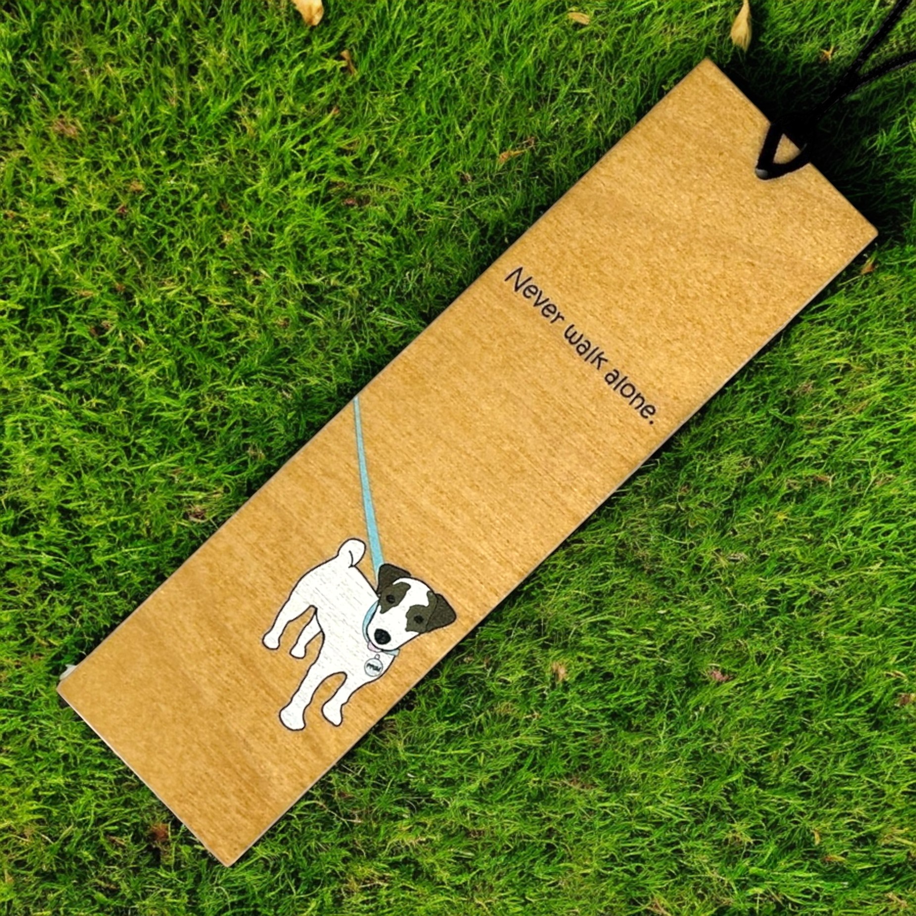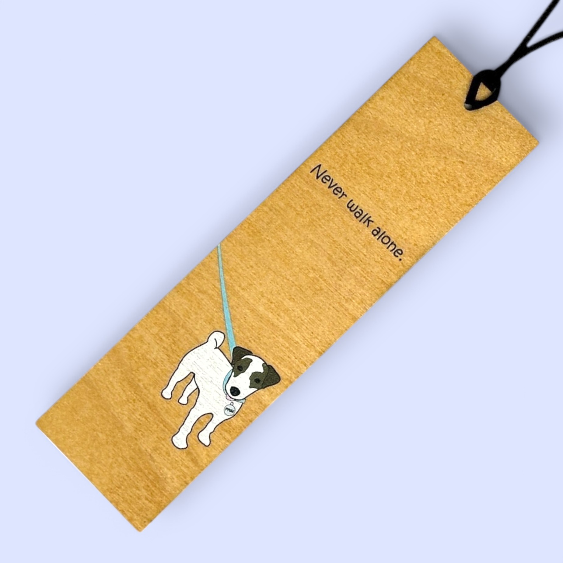 Keep your place with a furry friend! This charming wooden bookmark features our adorable Jack Russell Terrier, Prim, proudly sporting her leash and her motto: “Never Walk Alone.” Made from durable 1/16 Multiply Baltic Birch wood, its thin design ensures it nestles snugly between your book’s pages without adding extra bulk or damaging the binding. Perfect for dog lovers and avid readers, this bookmark is a reminder that you’re always in good company.