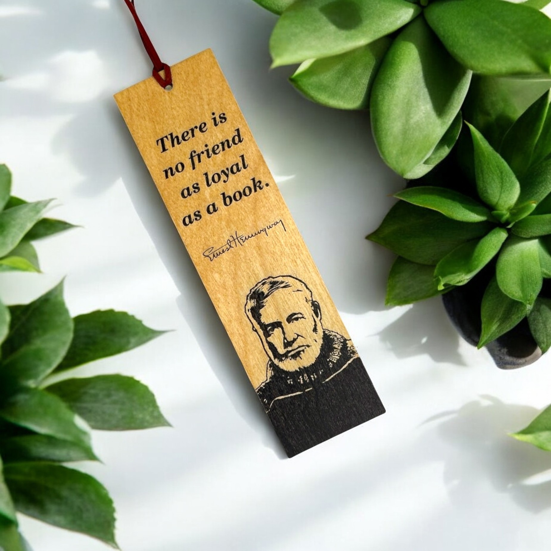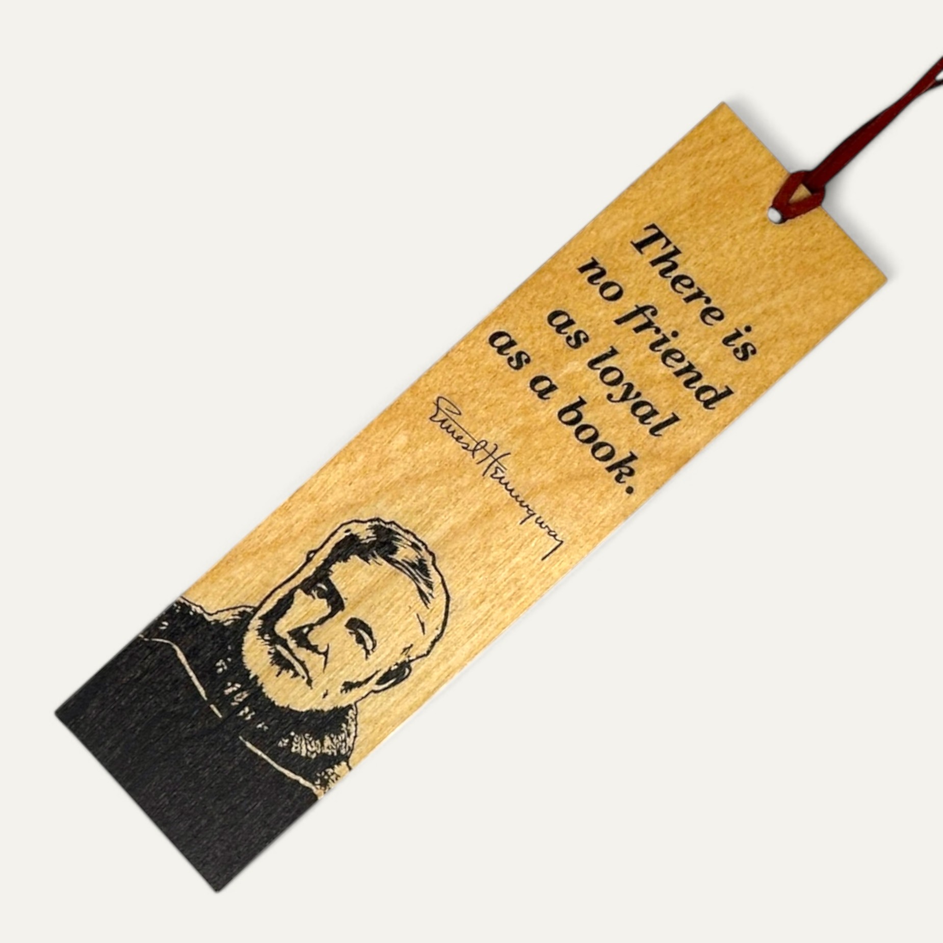 As Ernest Hemingway said, ?There is no friend as loyal as a book.? Immerse yourself in the world of literature with our Hemingway Wooden Bookmark, designed to inspire every reader. Handcrafted in the USA, inGENEius wooden bookmarks combine the durability and natural texture of 1/16″ Baltic Birch with the Vibrancy of full color printing. Their thin profile ensures they won’t add bulk or damage your book binding. Perfect for book lovers, the bookmark’s?elegant design and meaningful message make it a perfect companion for your next reading adventure.