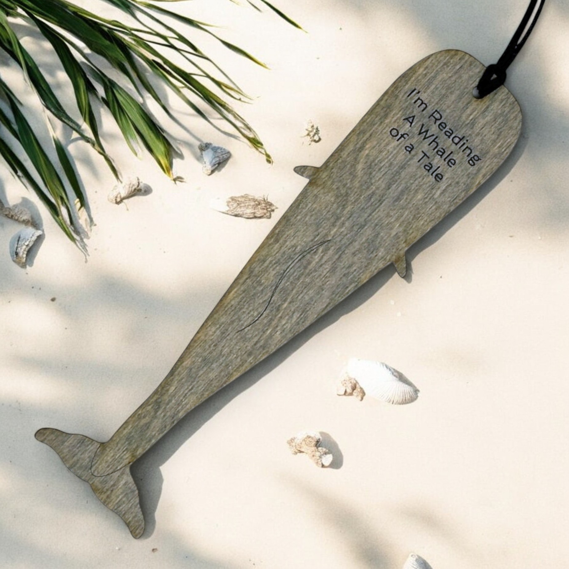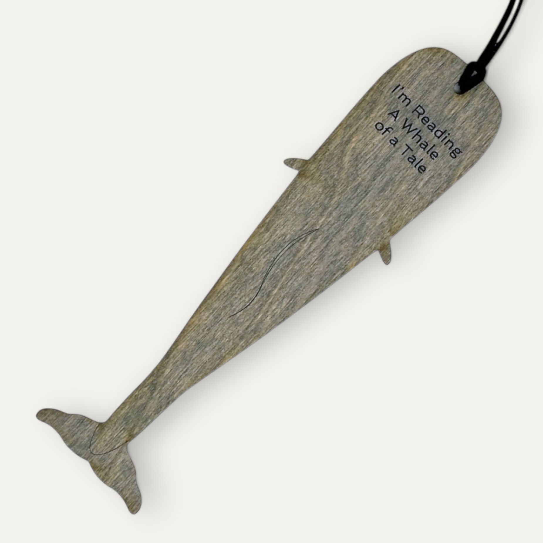 Are you reading a whale of a tale? Our Whale bookmark is cut to the shape of our favorite Cetacean and stained grey.