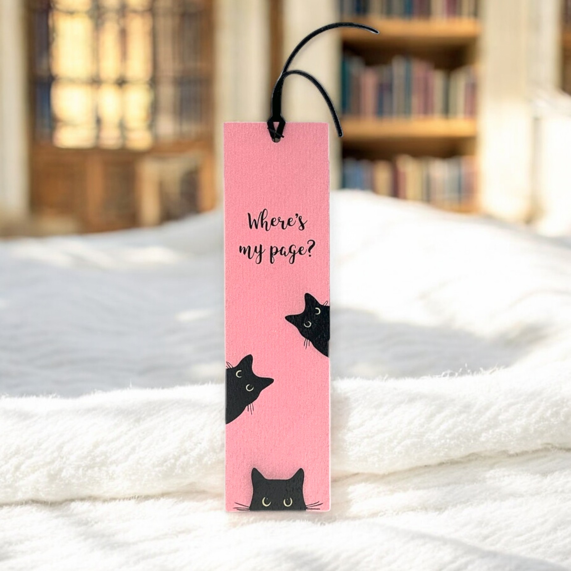 Have you ever wondered: “Where’s My Page?”. Our wooden bookmarks are here to help! Enhance your reading journey with our charming wooden bookmark, featuring an endearing ~ if mildly judgmental ~ black cat on the lookout for where you left off in your favorite read. Handcrafted in the USA, this bookmark combines the durability of 1/16″ Baltic Birch with the Vibrancy of full color printing. Its thin profile ensures it won’t add bulk or damage your book binding, making it the perfect companion for any bibliophile. With its delightful artwork and sturdy construction, this is more than just a bookmark?it’s a delightful accessory for any cat-loving reader.